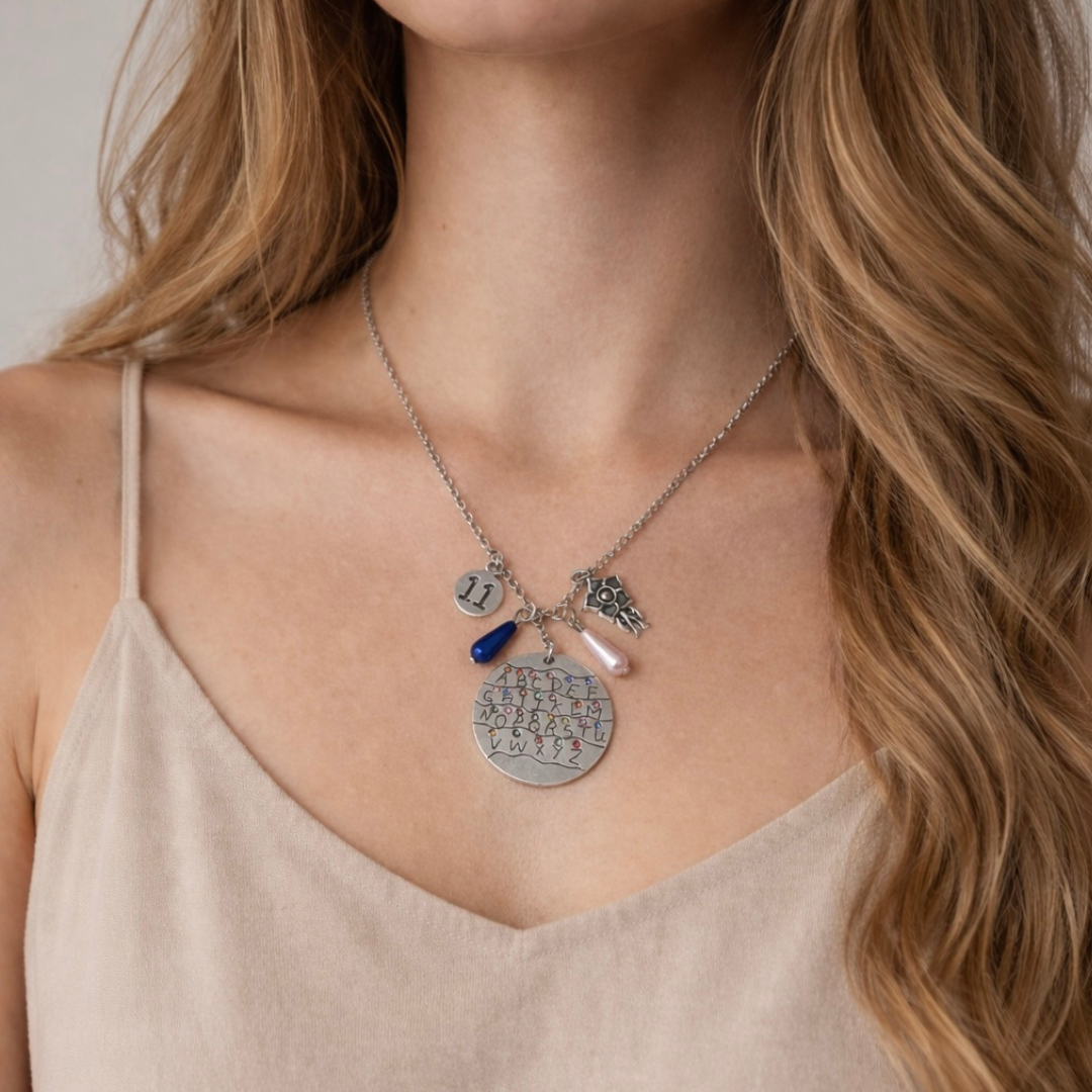 El colgante está fabricado con aleación metálica de alta calidad y un acabado plateado. Es ligero, resistente y está pensado para el uso diario.